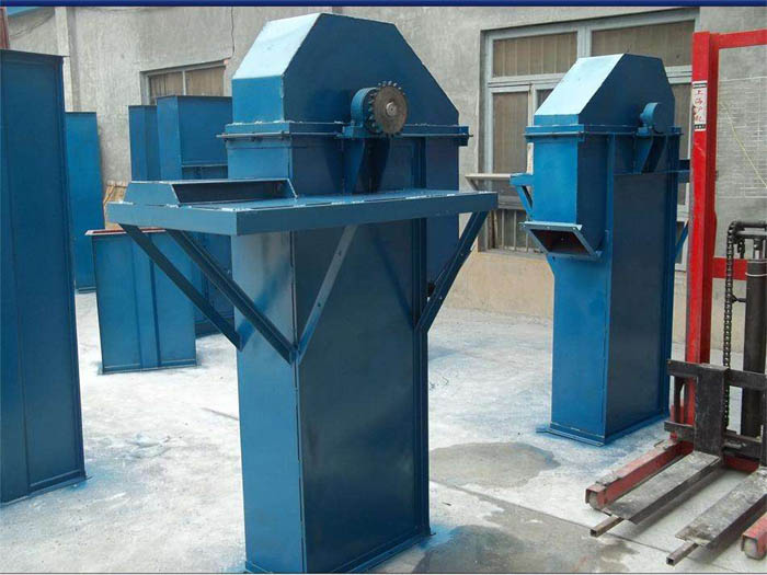 提升機是一種應用非常廣泛的機械輸送設備,其工作原理是牽引帶圍繞在頭輪和底輪之間,畚斗按一 定距離固定在牽引帶上,外殼將畚斗和牽引帶密封,物料由機座進入運動著的料斗,沿機筒提升,在機頭處物料由料斗拋出,經卸料管卸出機外。